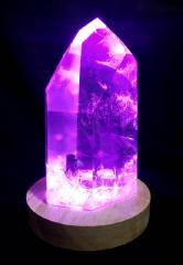 Color Changing Wood Lighted Display Stand. Appropriate for spheres or flat-base stones. USB cord with switch. 4 inches in diameter, with 1.25 inch diameter hole. (crystal not included)