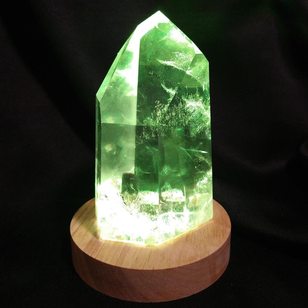 Color Changing Wood Lighted Display Stand. Appropriate for spheres or flat-base stones. USB cord with switch. 4 inches in diameter, with 1.25 inch diameter hole. (crystal not included)