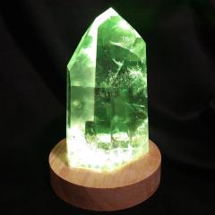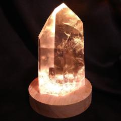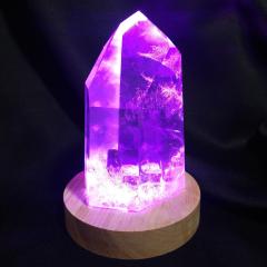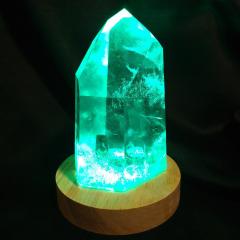 Color Changing Wood Lighted Display Stand. Appropriate for spheres or flat-base stones. USB cord with switch. 4 inches in diameter, with 1.25 inch diameter hole.(crystal not included)