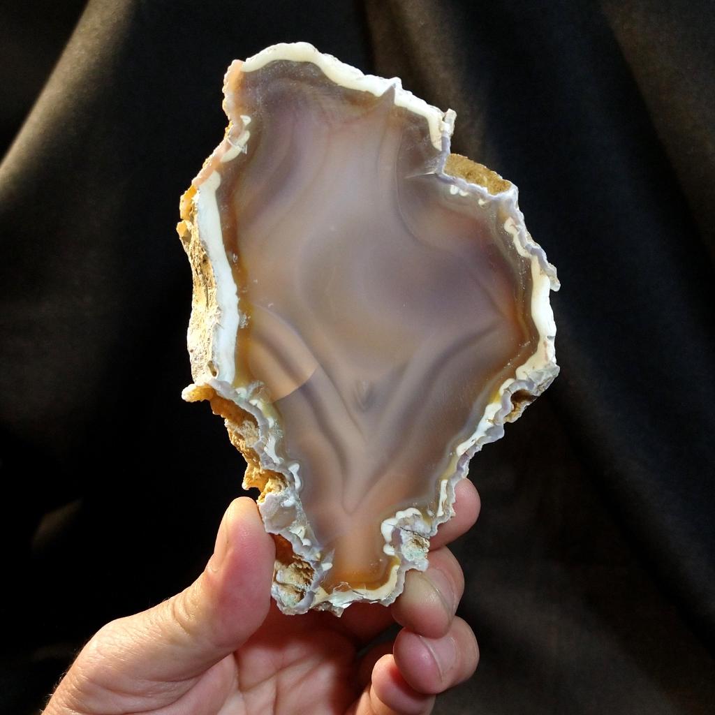 Agate thick cut slab, 4.65 inches long, 0.44 pound in weight.This is a one-of-a-kind item - you will receive the actual item in photo. Once sold, it is gone.