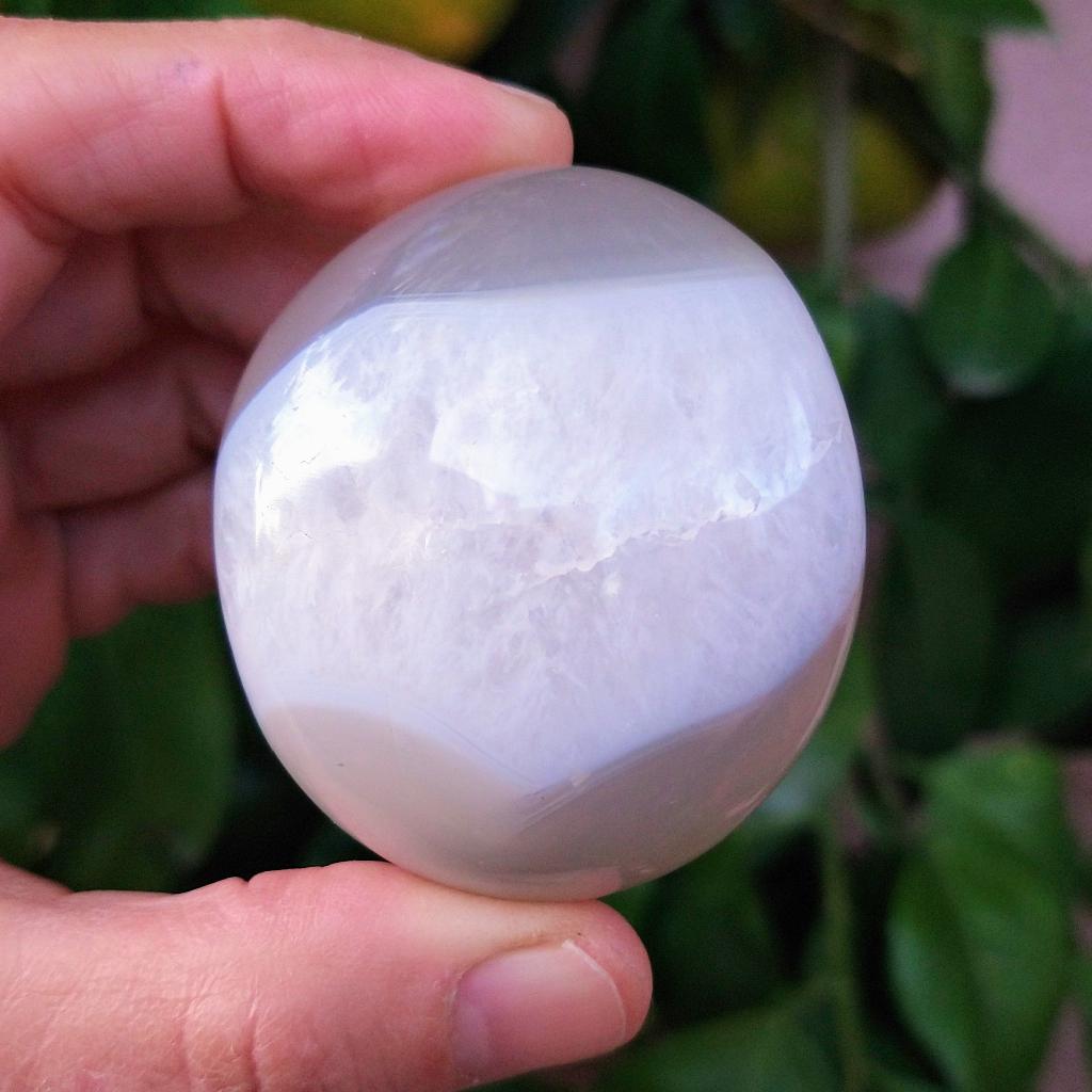 Agate with Quartz palm stone. 2 inches long. 0.27 pound in weight.This is a one-of-a-kind item - you will receive the actual item in photo. Once sold, it is gone.