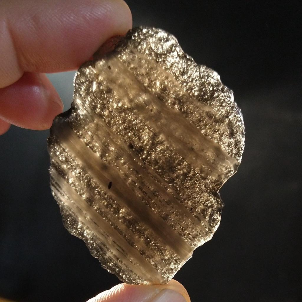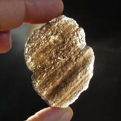 Agni Manitite, sliced and polished on one side, the other side left natural. Exhibits nice internal striations. 2.15 inches long, 23.93 grams in weight. The two images show both sides - the polished and unpolished.This is a one-of-a-kind item - you will receive the actual item in photo. Once sold, it is gone.