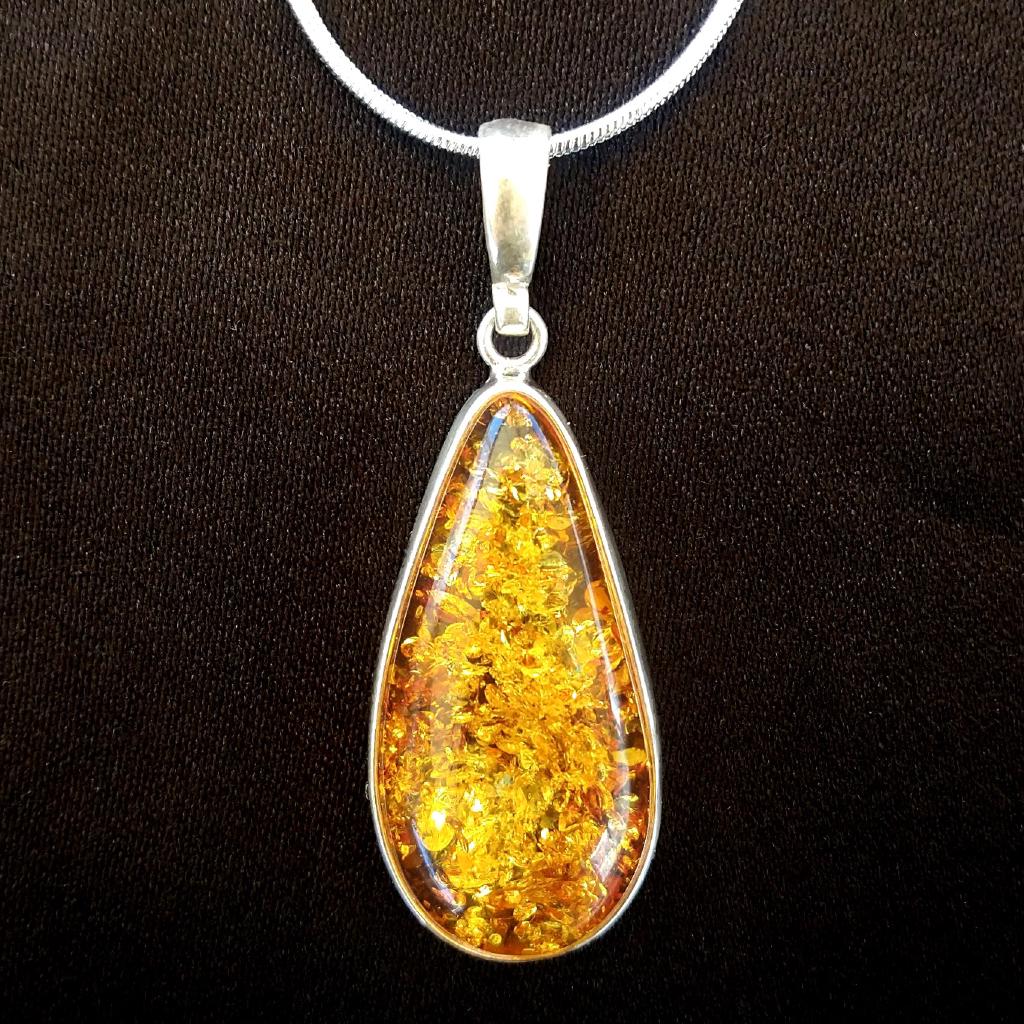 Baltic Amber Pendant, set in sterling silver. Pendant is approximately 2 inches long including bail.18 inch silver plated courtesy chain included.This is a one-of-a-kind item - you will receive the actual item in photo. Once sold, it is gone.
