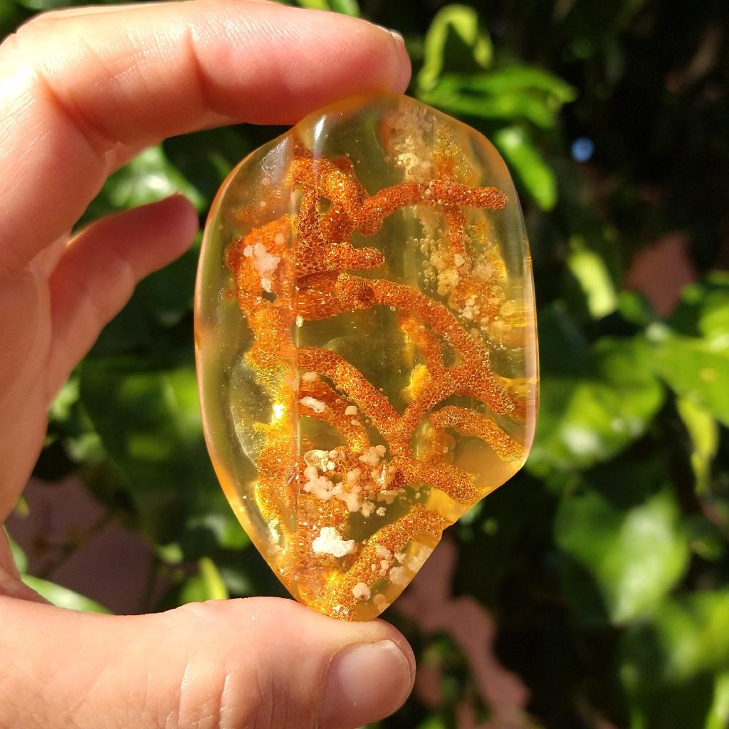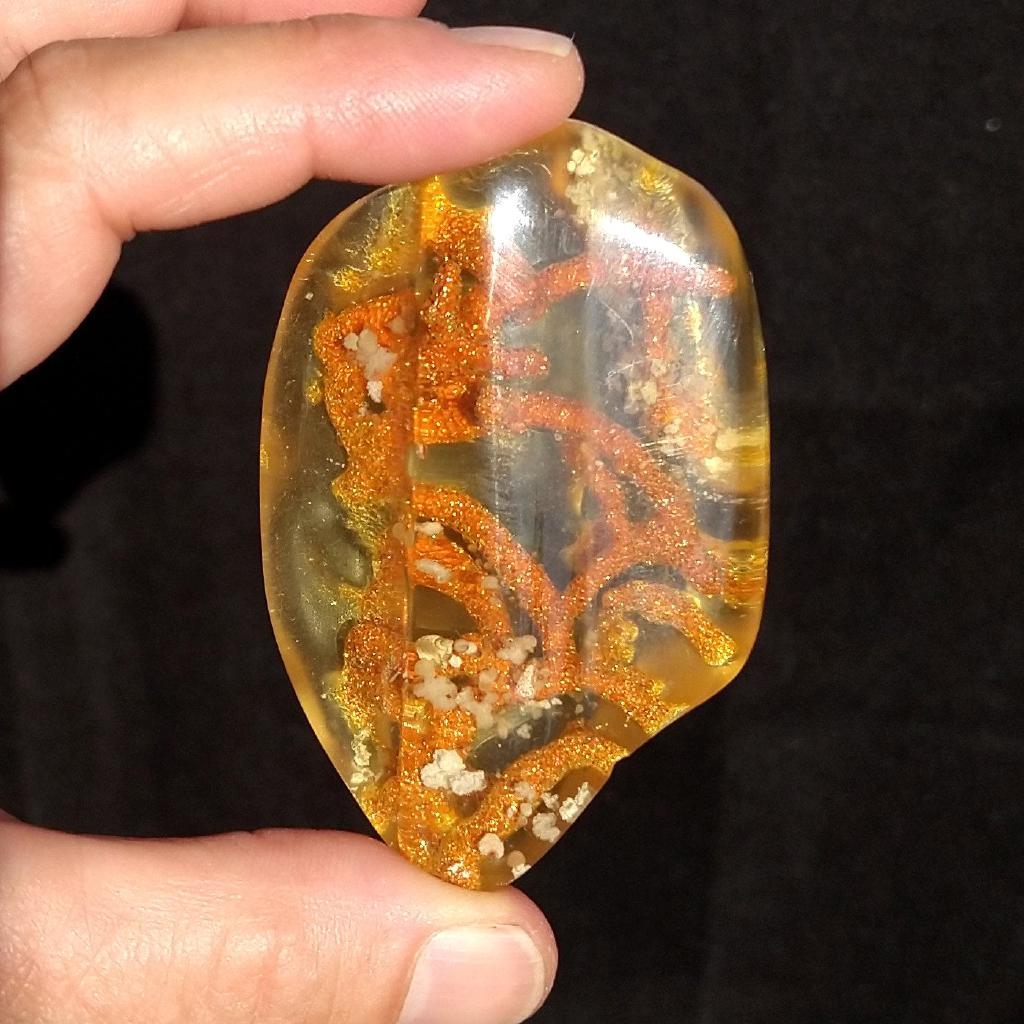 Amber from Colombia with inclusions. 2.8 inches long, 27.61 grams in weight.This is a one-of-a-kind item - you will receive the actual item in photo. Once sold, it is gone.