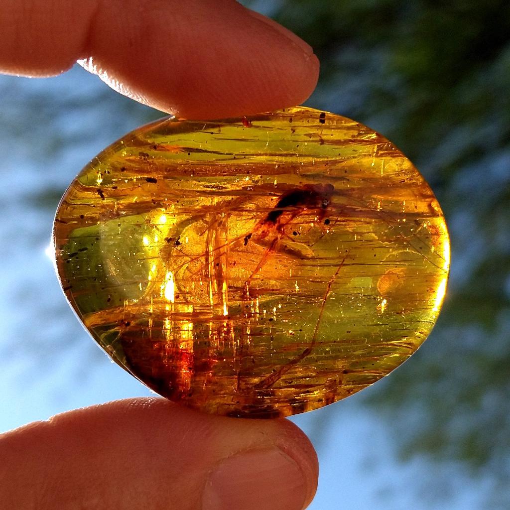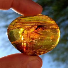 Excellent Chiapas Amber with Insect. It looks nearly identical to the elephant mosquito included amber featured in the movie Jurassic Park. A premium piece to add to your collection. 1.75 inches long, and 11.11 grams in weight. Chiapas Amber is also known to fluoresce under UV light. This is a one-of-a-kind item - you will receive the actual item in photo. Once sold, it is gone.