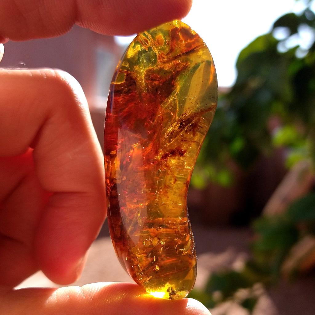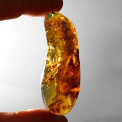 Chiapas Amber. 2.5 inches long, and 14.08 grams in weight. Chiapas Amber is also known to fluoresce under UV light. This is a one-of-a-kind item - you will receive the actual item in photo. Once sold, it is gone.