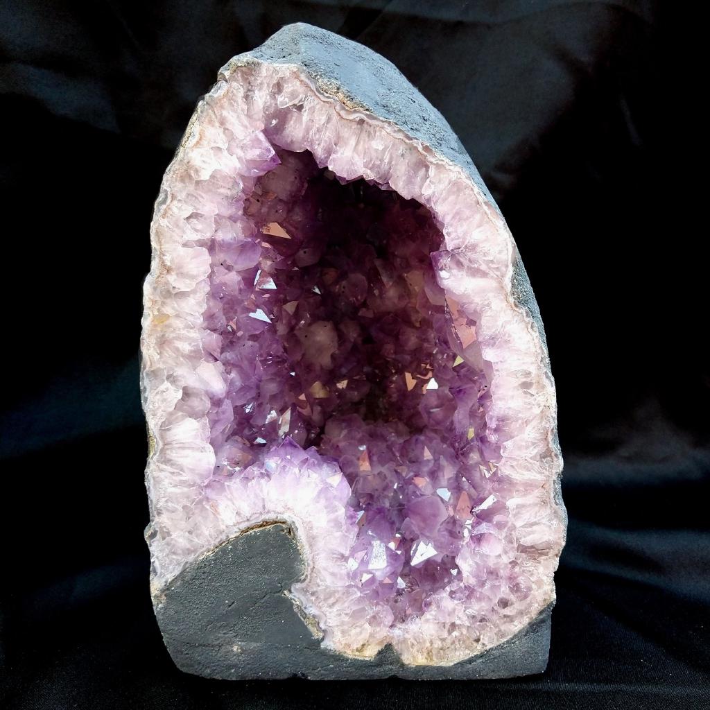 Small Cathedral Amethyst Geode, 9.65 inches tall, 10.91 pounds (4.95 kilos) in weight. See additional enlargement of interior. This is a one-of-a kind item - you will receive the actual item in photo - once sold, it is gone.