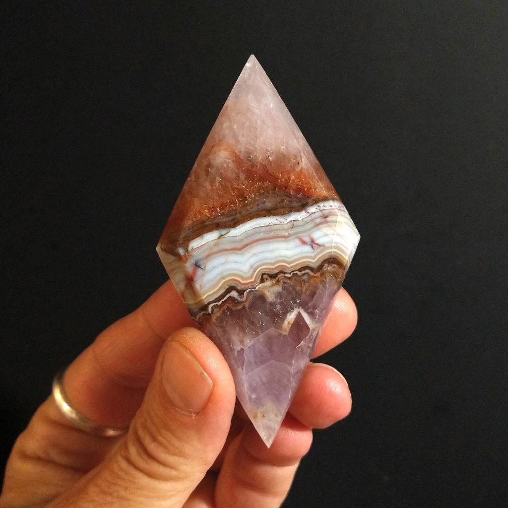 Lace Amethyst, cut & polished. 3.2 inches long. This is a one-of-a-kind item. You will receive the actual item in photo. Once sold, it is gone.