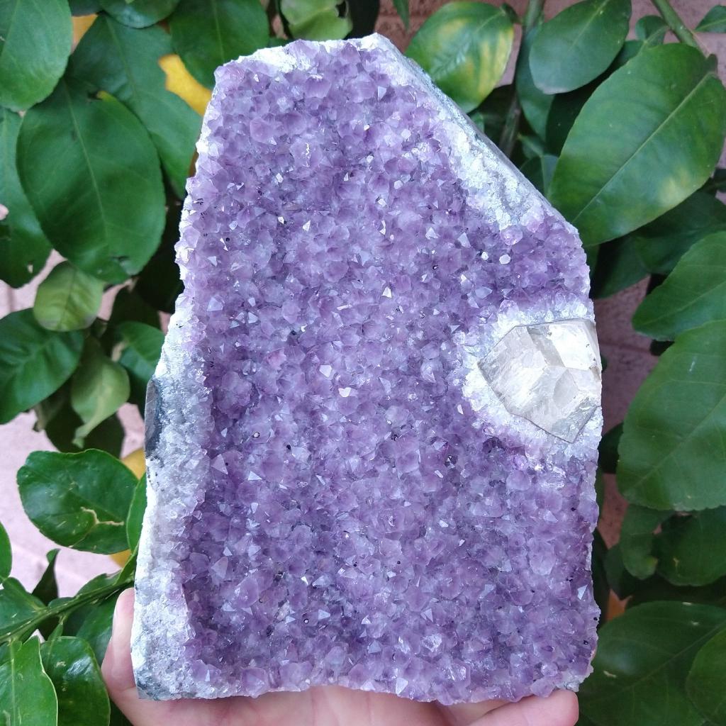 Amethyst with calcite, 8.25 inches tall, 5.99 pounds in weight. This is a one-of-a-kind item - you will receive the actual item in photo. Once sold, it is gone.