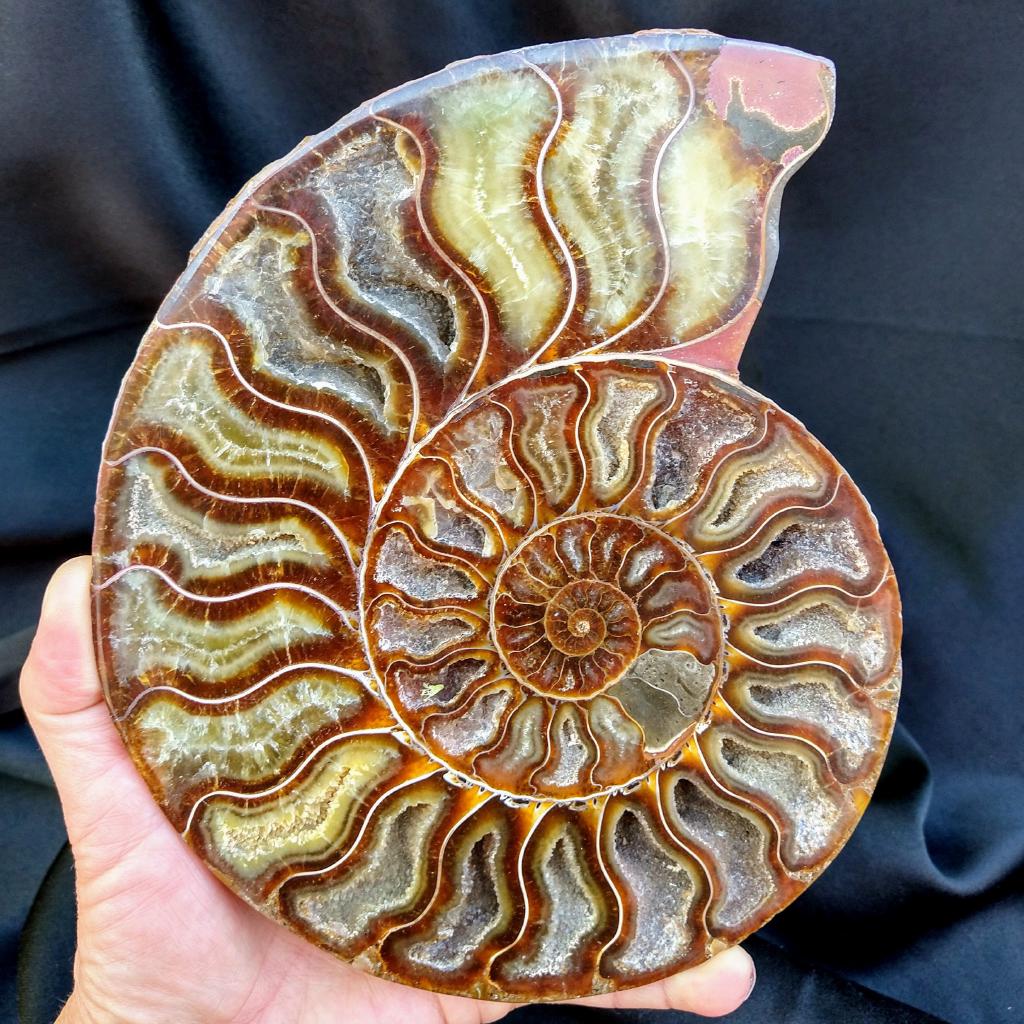 Ammonite Fossil Pair, from Madagascar. Each is 7.5 inches long. Total weight of pair is 3.66 pounds. Small display stands will be included.This is a one-of-a-kind item. You will receive the actual item in photo. Once sold, it is gone.