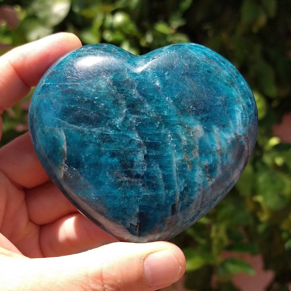 Blue Apatite Heart. 3.25 inches wide, 0.74 pound in weight. This is a one-of-a-kind item - you will receive the actual item in photo. Once sold, it is gone.