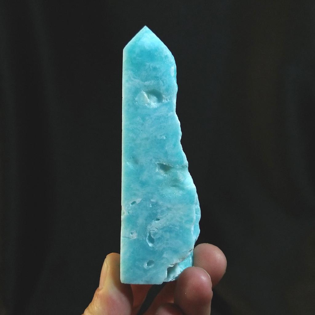 Blue Aragonite, cut & polished. 4 inches long. This is a one-of-a-kind item. You will receive the actual item in photo. Once sold, it is gone.