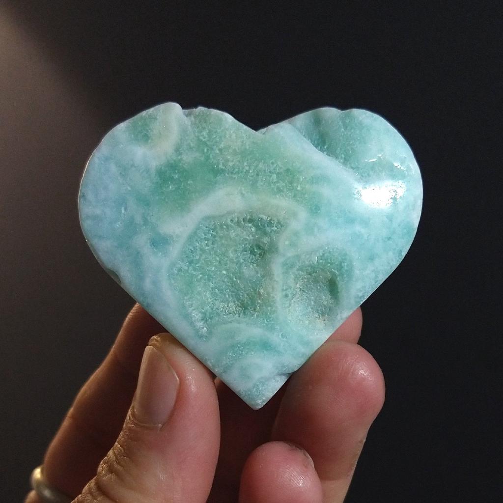Blue Aragonite Heart, 2.15 inches wide.This is a one-of-a-kind item. You will receive the actual item in photo. Once sold, it is gone.