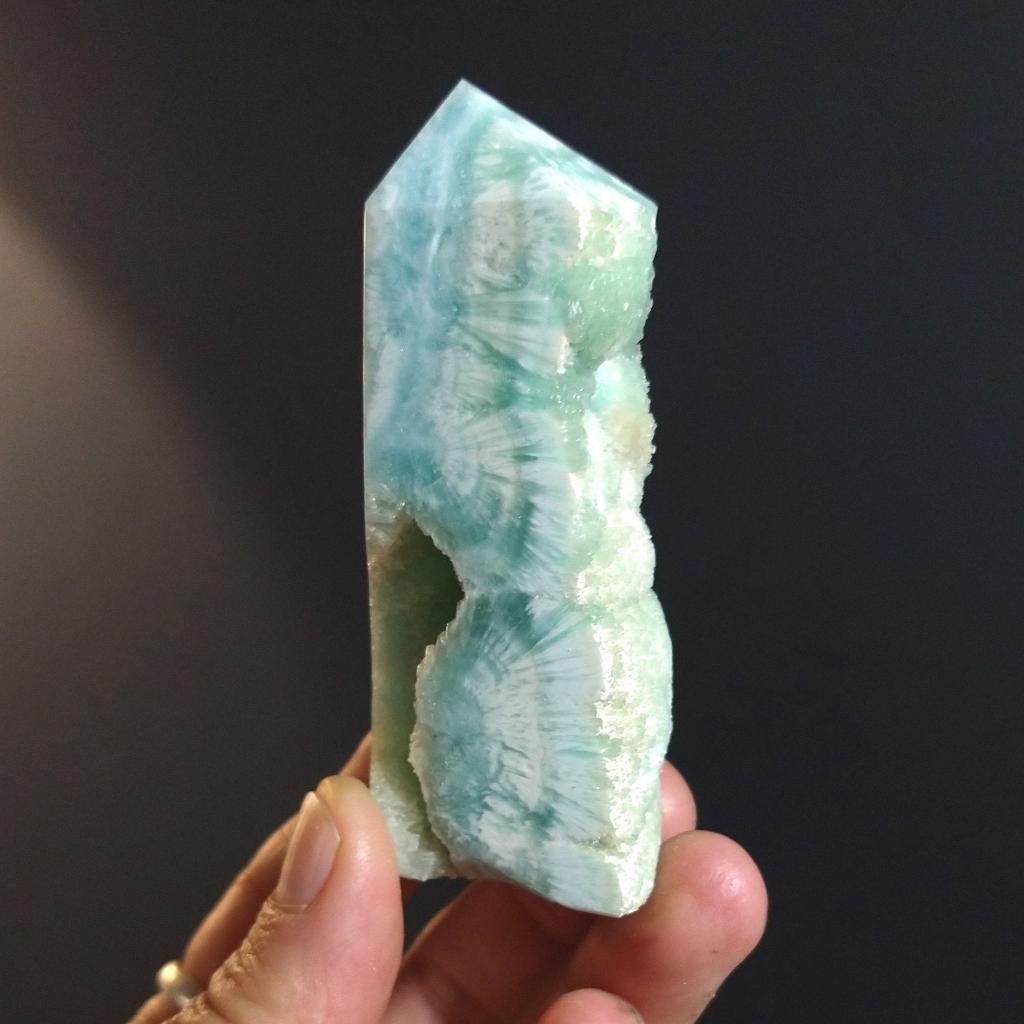 Blue Aragonite, cut tower. 3.15 inches long.This is a one-of-a-kind item. You will receive the actual item in photo. Once sold, it is gone.