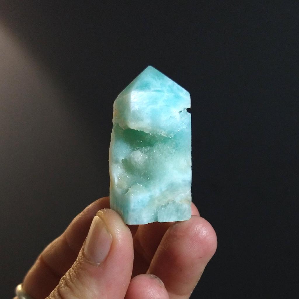 Small Blue Aragonite, cut tower. 1.9 inches long.This is a one-of-a-kind item. You will receive the actual item in photo. Once sold, it is gone.