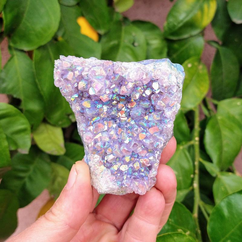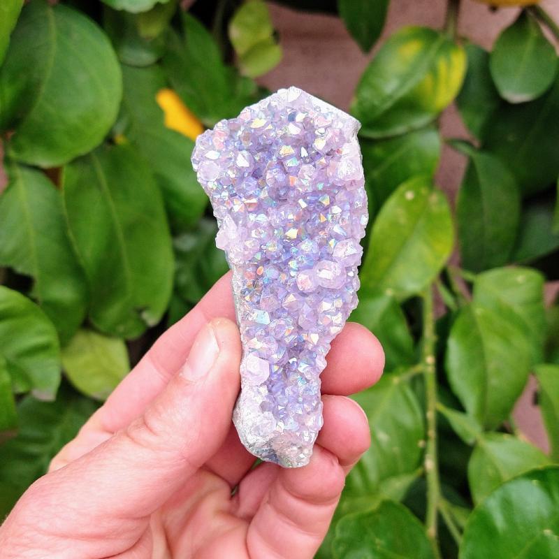 Aura Amethyst Cluster. 3.15 inches long, 0.13 pound in weight. This is a one-of-a-kind item - you will receive the actual item in photo. Once sold, it is gone.