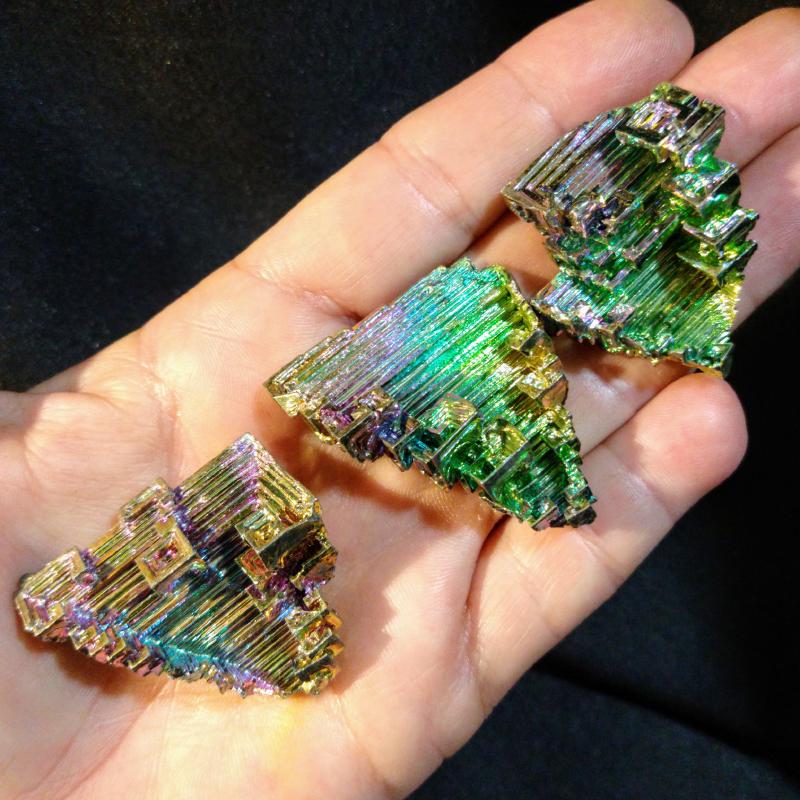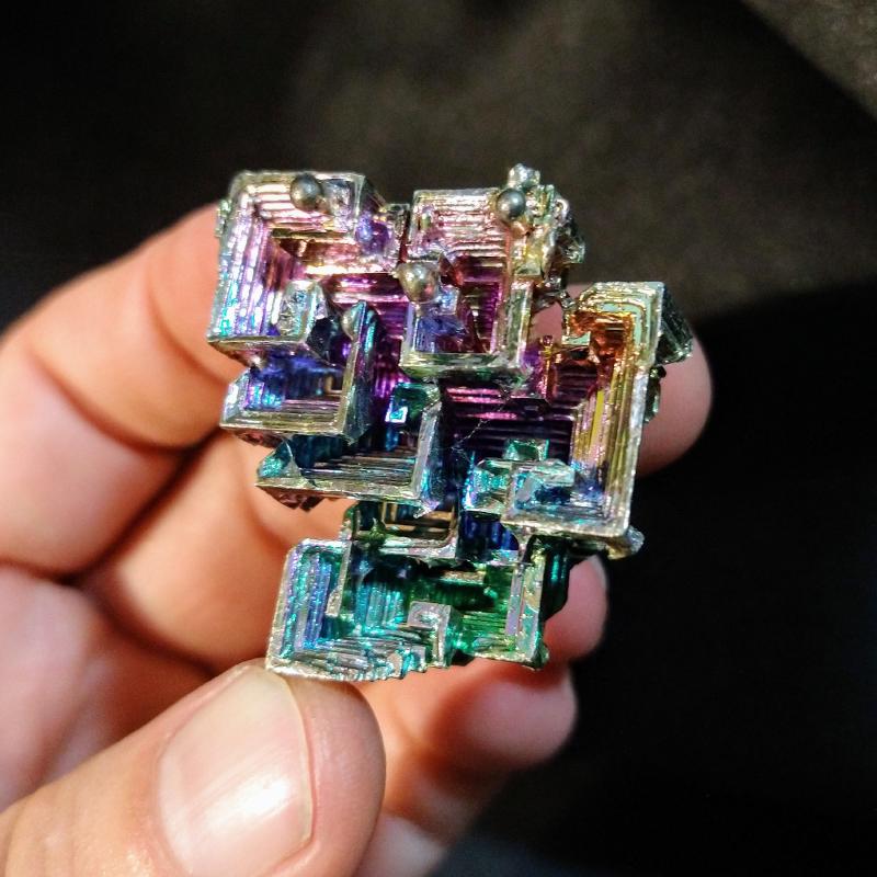 Bismuth is extremely rare occurring as crystals in nature. Our crystals are laboratory grown, and exhibit beautiful colors and formations. Scarce as silver, heavier than lead, one cubic foot of Bismuth would weigh over 600 pounds. It is classified as a semi-precious semi-metal.