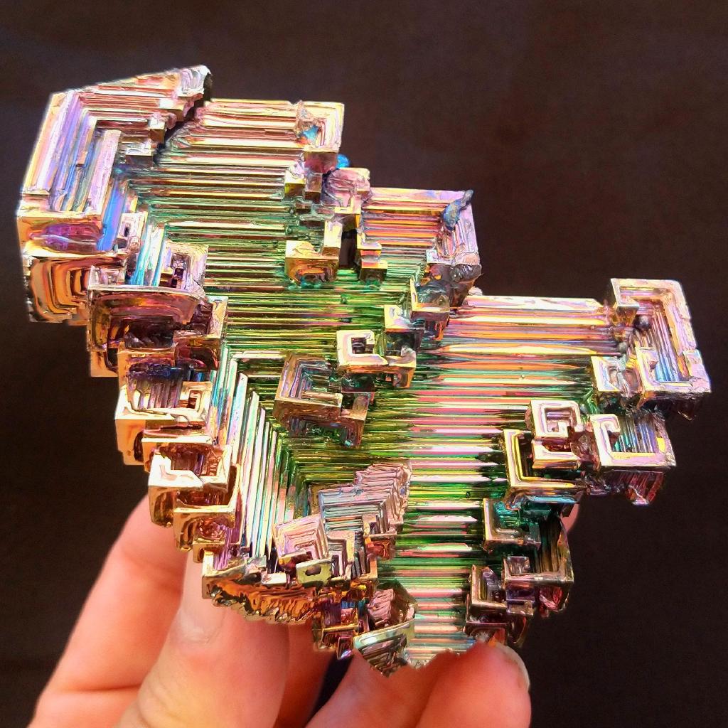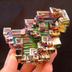 Bismuth specimen, grown in the laboratory. 3.5 inches long, 0.58 pound in weight.This is a one-of-a-kind item - you will receive the actual item in photo. Once sold, it is gone.