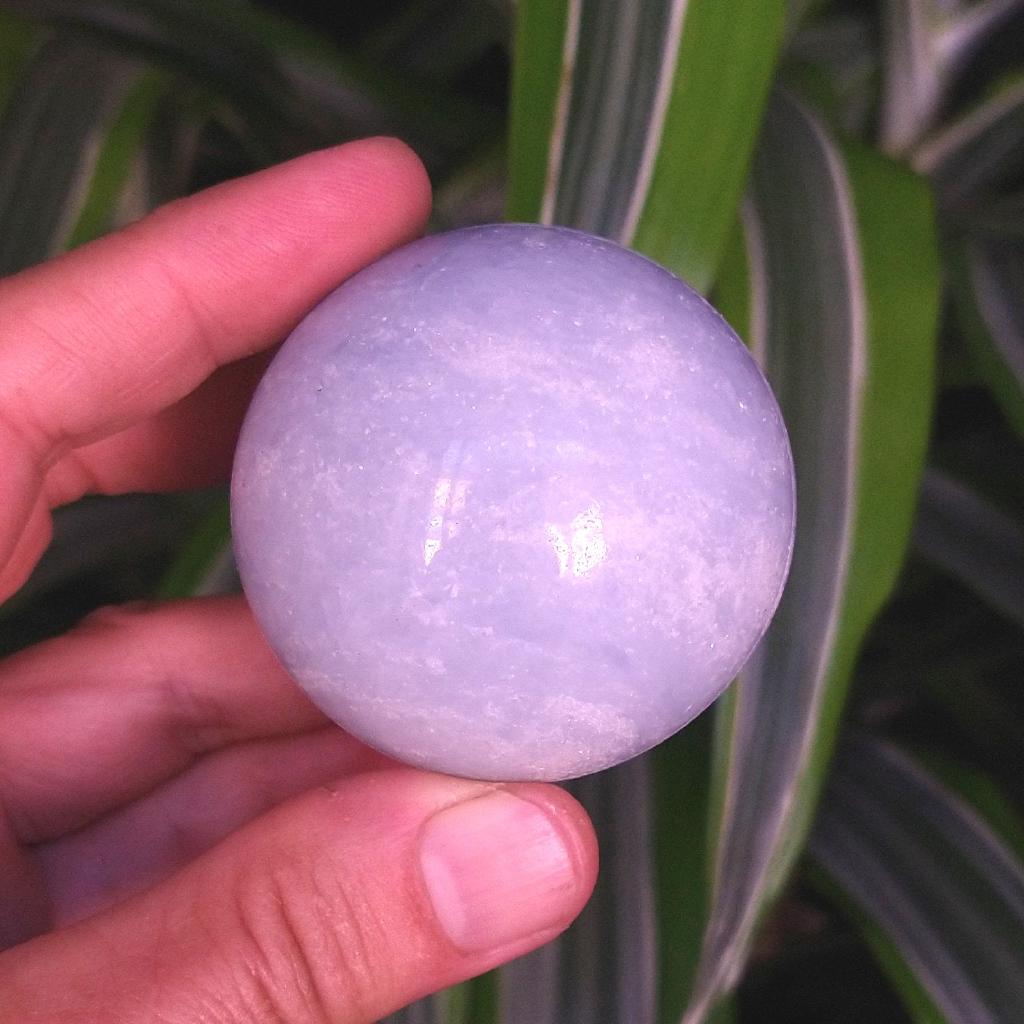 Blue Calcite Sphere., 2 inches in diameter. This is a one-of-a-kind item - you will receive the actual item in photo. Once sold, it is gone.