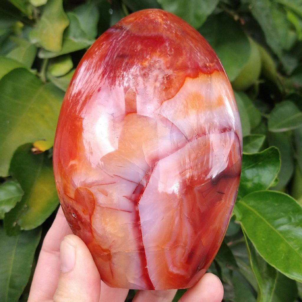 Polished Carnelian. 5 inches long, and 1.55 pounds in weight.This is a one-of-a kind item - you will receive the actual item in photo - once sold, it is gone.