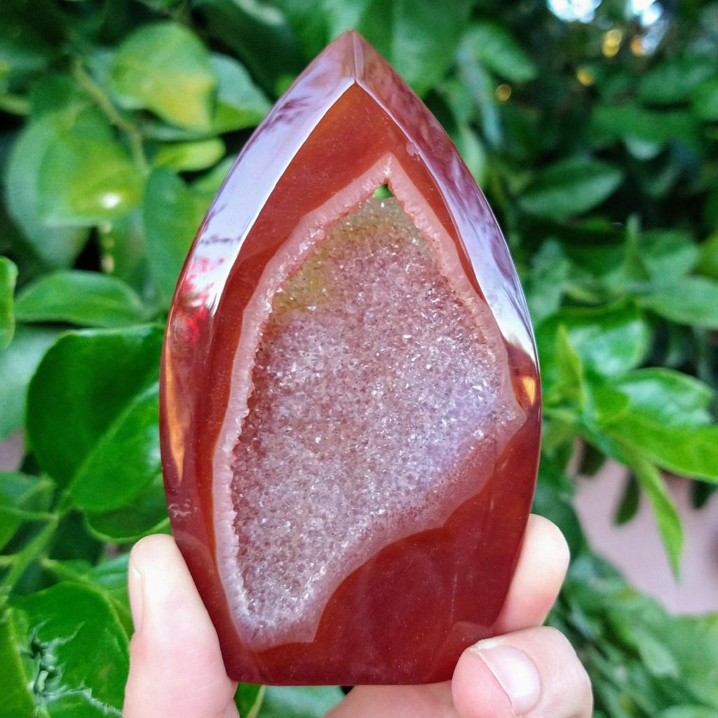 Cut & polished Carnelian. 4.25 inches long, 0.50 inch thick, and 0.28 pound in weight. Additional image held up to sunlight. This is a one-of-a kind item - you will receive the actual item in photo - once sold, it is gone.