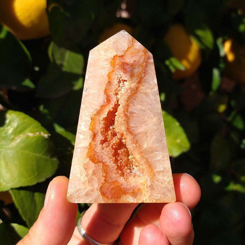Carnelian Quartz cut & polished, with natural cavity. 2.9 inches long, 0.18 pound in weight. This is a one-of-a-kind item - you will receive the actual item in photo. Once sold, it is gone.