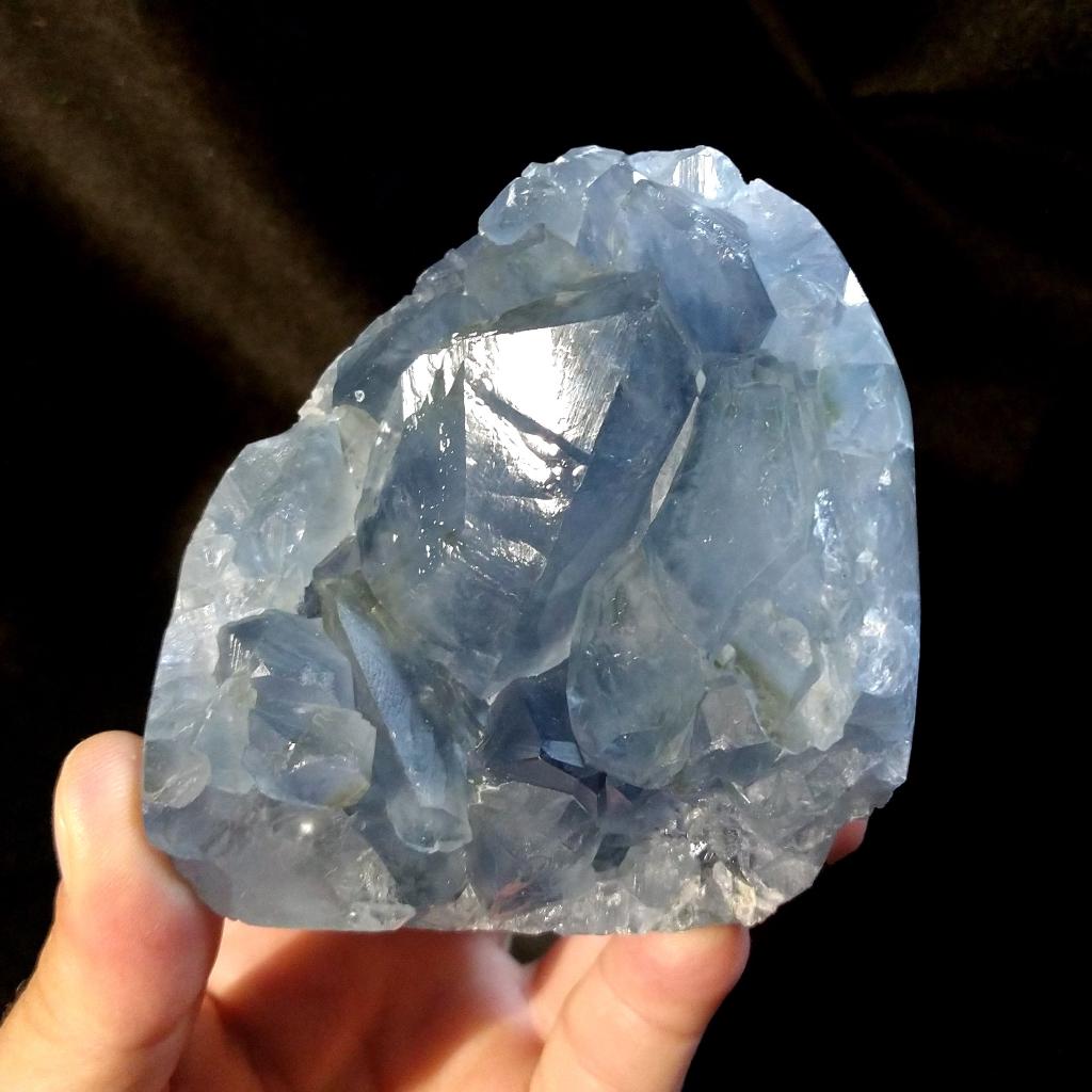 Celestite from Madagascar. 3.2 inches long, 1.25 pounds in weight.This is a one-of-a-kind item - you will receive the actual item in photo. Once sold, it is gone.