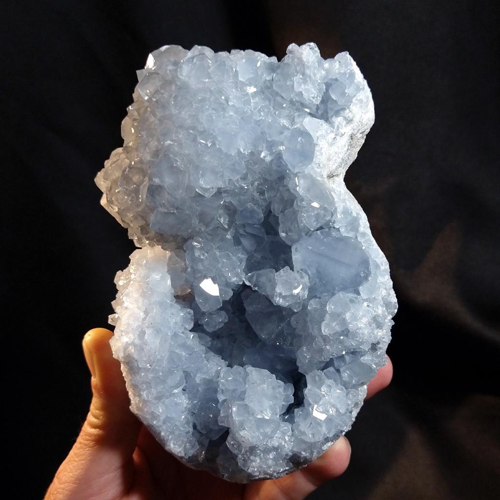 Celestite specimen from Madagascar. 5 inches long, 2.4 pounds in weight.This is a one-of-a-kind item - you will receive the actual item in photo. Once sold, it is gone.