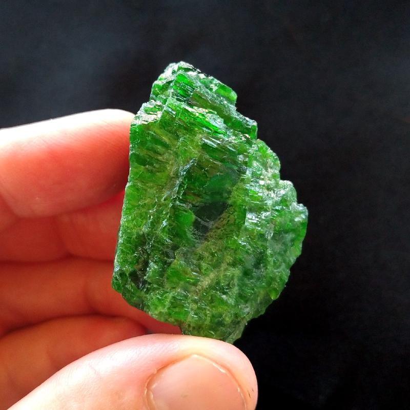 Chrome Diopside specimen from Russia. 1.5 inches long, 39.21 grams in weight. This is a one-of-a kind item - you will receive the actual item in photo - once sold, it is gone.