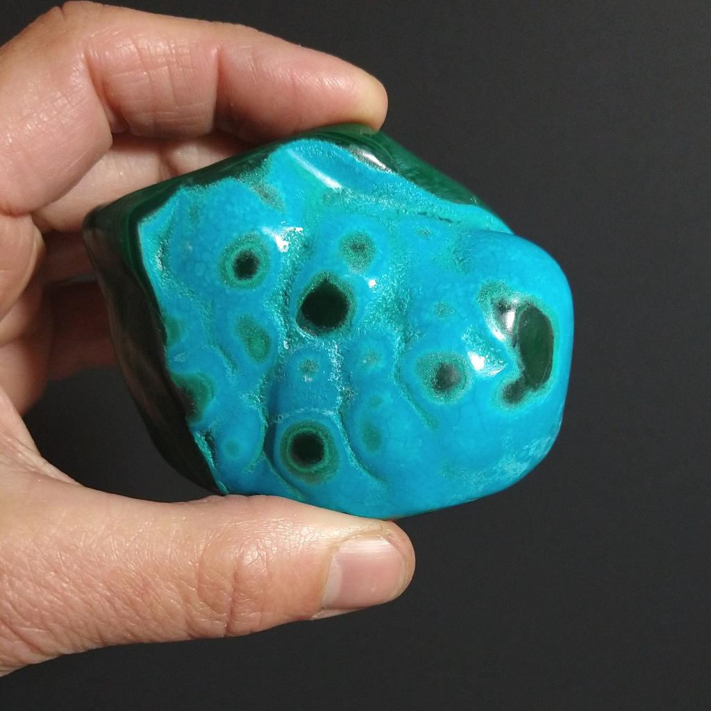 Chrysocolla with Malachite from Africa. 3.25 inches long, 0.38 pound in weight. This is a one-of-a-kind item - you will receive the actual item in photo. Once sold, it is gone.