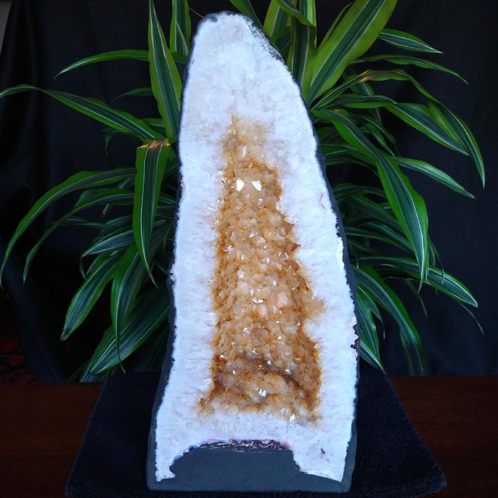 Cathedral Citrine Geode, 18.15 inches tall, 33.28 pounds in weight. This is a one-of-a kind item - you will receive the actual item in photo - once sold, it is gone.