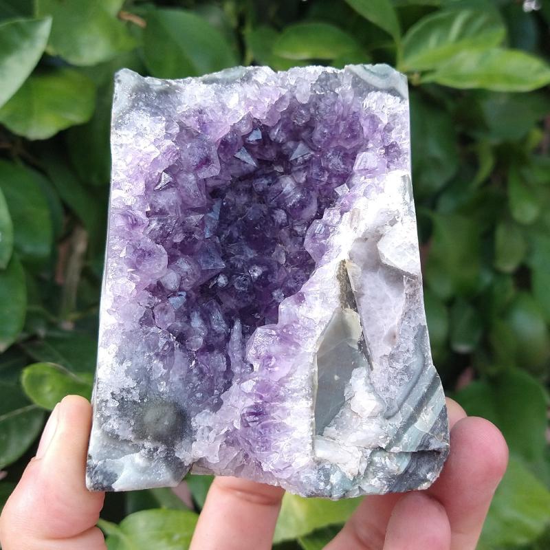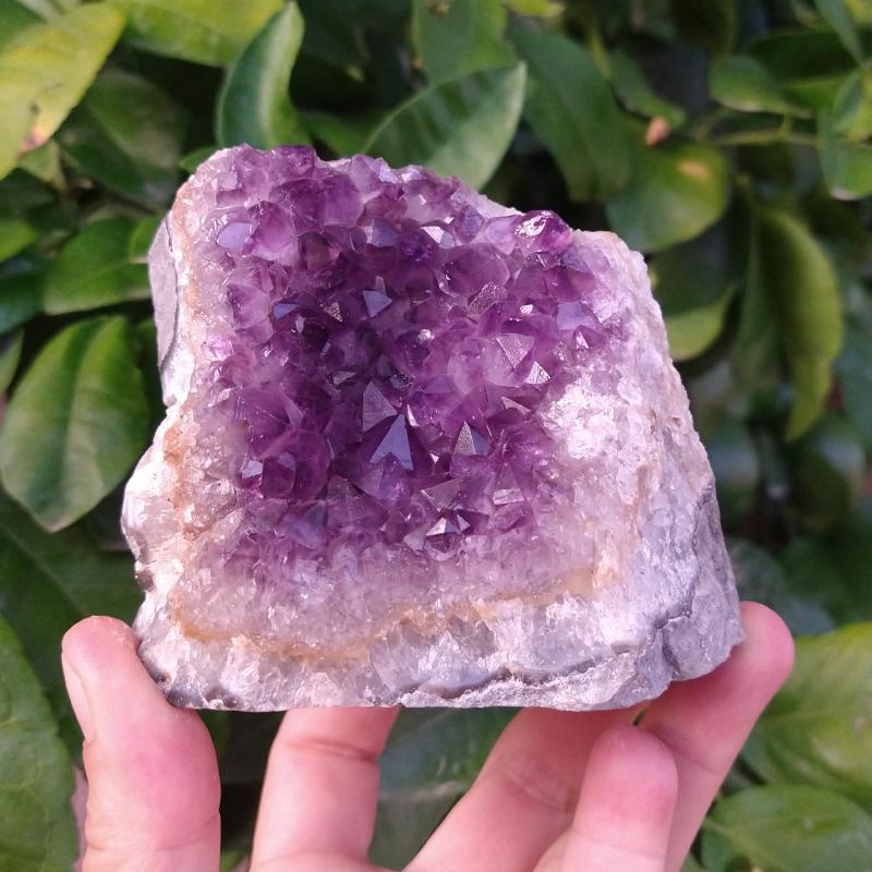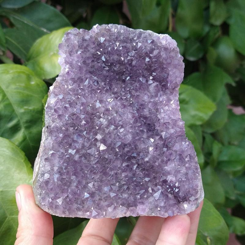 Amethyst, cut base so it stands up for display. 3.75 inches tall, 1.40 pounds in weight.This is a one-of-a-kind item - you will receive the actual item in photo. Once sold, it is gone.