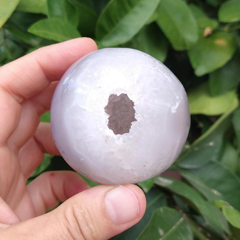 Agate / Quartz Sphere with natural cavity. 2.25 inches in diameter, 0.47 pound in weight. This is a one-of-a-kind item - you will receive the actual item in photo. Once sold, it is gone.