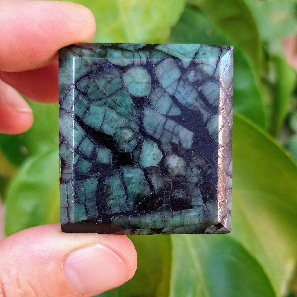 Cut and polished Emerald in matrix, from Brazil. 1.55 inches (40mm) long, 23.92 grams in weight.This is a one-of-a kind item - you will receive the actual item in photo - once sold, it is gone.