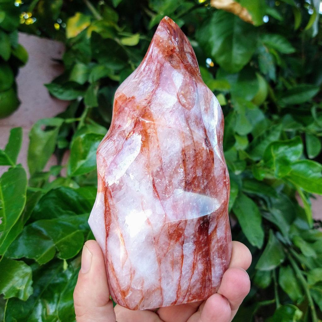 Fire Quartz cut & polished flame (hematoid quartz). 5.75 inches long, 1.48 pounds in weight.This is a one-of-a-kind item. You will receive the actual item in photo. Once sold, it is gone.