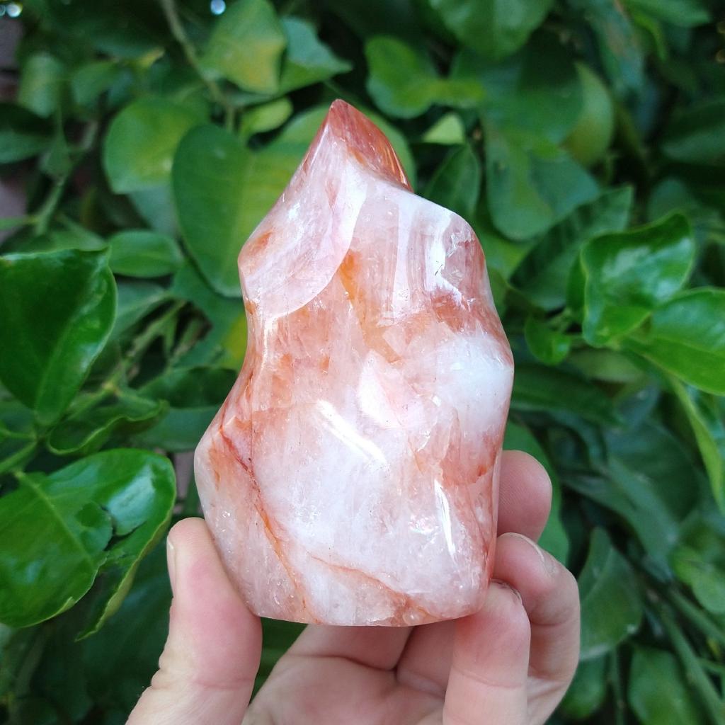 Small Fire Quartz cut & polished flame (hematoid quartz). 3.65 inches long, 0.70 pound in weight.This is a one-of-a-kind item. You will receive the actual item in photo. Once sold, it is gone.