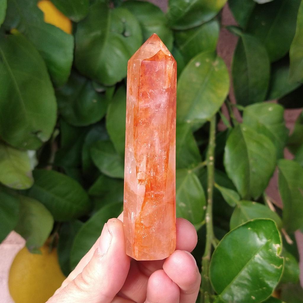 Fire Quartz Tower (hematoid quartz), cut & polished. 3.6 inches long, 0.14 pounds in weight.This is a one-of-a-kind item. You will receive the actual item in photo. Once sold, it is gone.