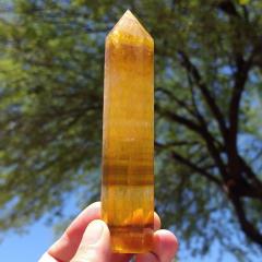 Cut & Polished Yellow Fluorite. 4.8 inches long, 0.33 pound in weight.This is a one-of-a-kind item - you will receive the actual item in photo. Once sold, it is gone.