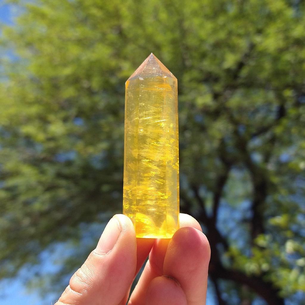 Cut & Polished Yellow Fluorite. 2.6 inches long.This is a one-of-a-kind item - you will receive the actual item in photo. Once sold, it is gone.