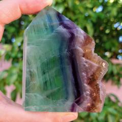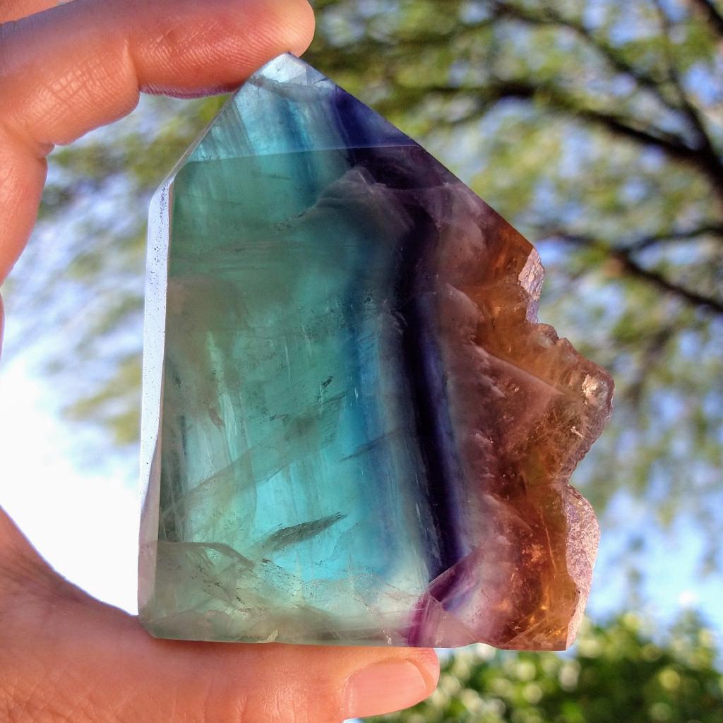 Rainbow Fluorite, cut and polished with natural crystal edge. 3 inches long, 0.51 pound in weight.This is a one-of-a-kind item - you will receive the actual item in photo. Once sold, it is gone.