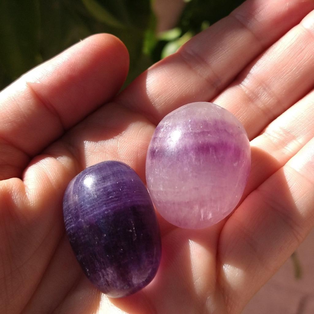 Tumbled Purple Fluorite, each one unique. Sold by the each.This is a one-of-a-kind item - you will receive the actual item in photo. Once sold, it is gone.