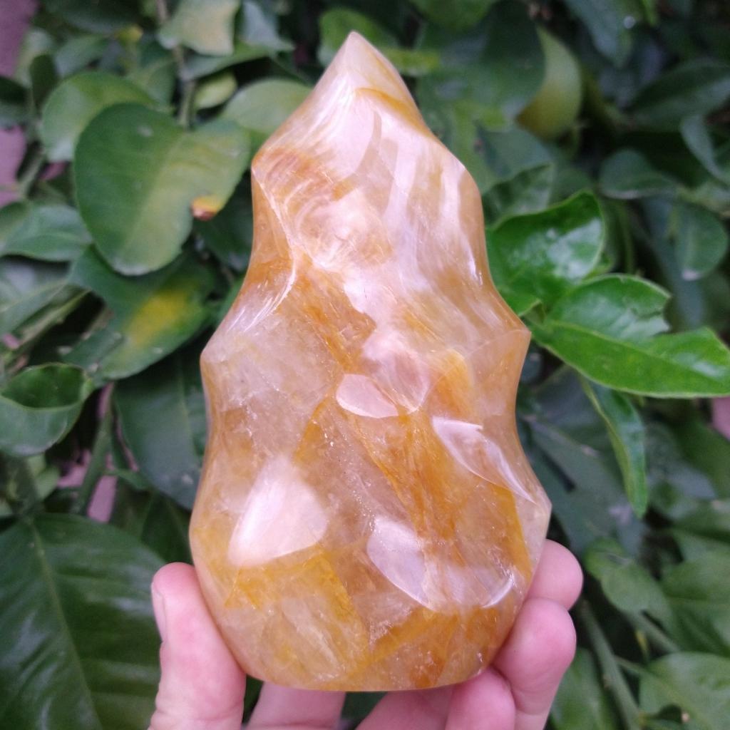 Cut & polished Golden Healer Quartz. 5.3 inches tall, 1.57 pounds in weight. This is a one-of-a-kind item - you will receive the actual item in photo. Once sold, it is gone.