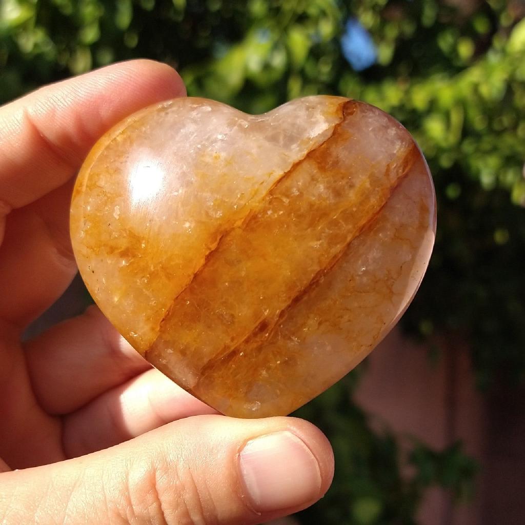 Golden Healer Quartz Heart, from Madagascar. 2.5 inches wide, 0.28 pound in weight.This is a one-of-a kind item - you will receive the actual item in photo - once sold, it is gone.