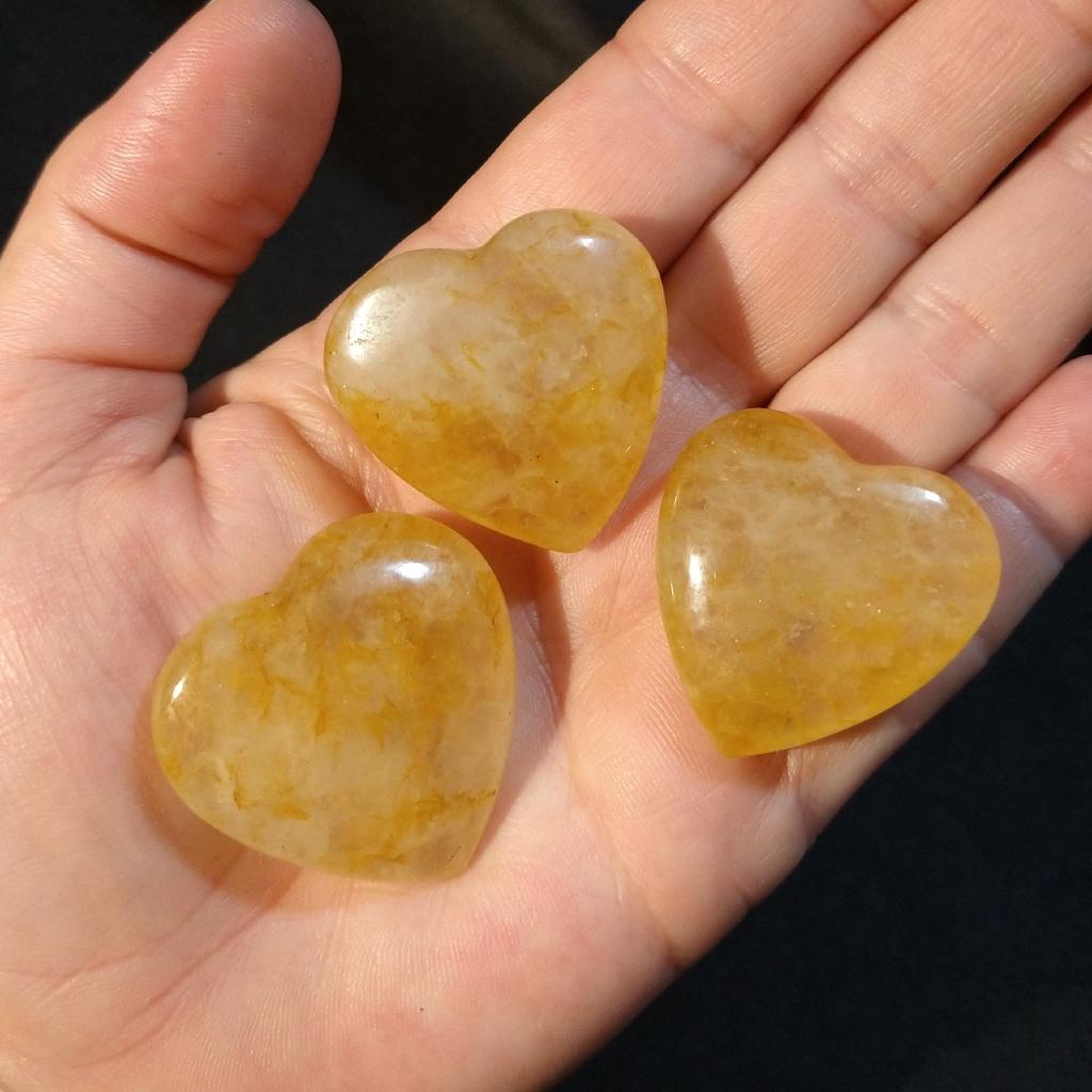 Polished Golden Healer Quartz heart. Approximately 1.25 inches wide. Each one unique. Sold by the each.