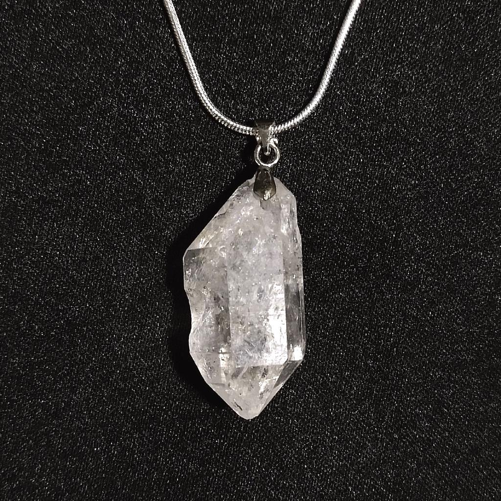 Herkimer Diamond Pendant. Single rough Herkimer Diamond. Silver plate bail, 18 inch silver plated courtesy chain included. From Pakistan. This is a one-of-a-kind item - you will receive the actual item in photo. Once sold, it is gone.