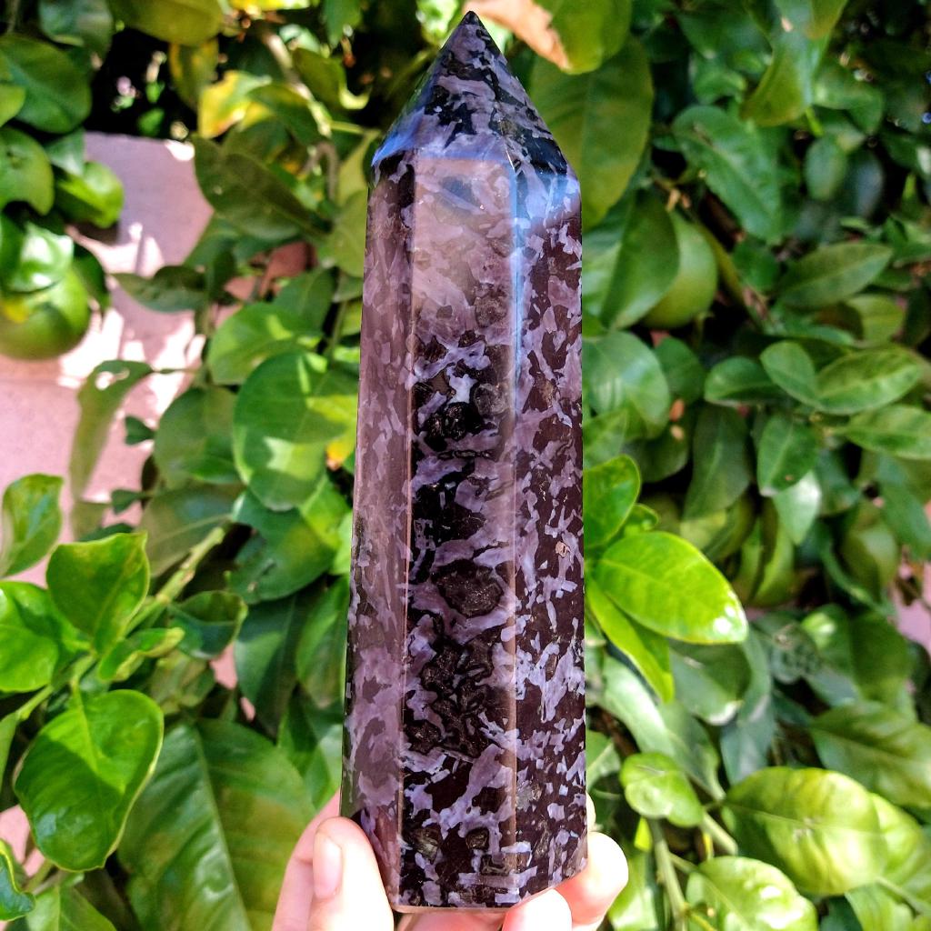 Indigo Gabbro tower, 7.25 inches long, 1.52 pounds in weight.This is a one-of-a-kind item - you will receive the actual item in photo. Once sold, it is gone.