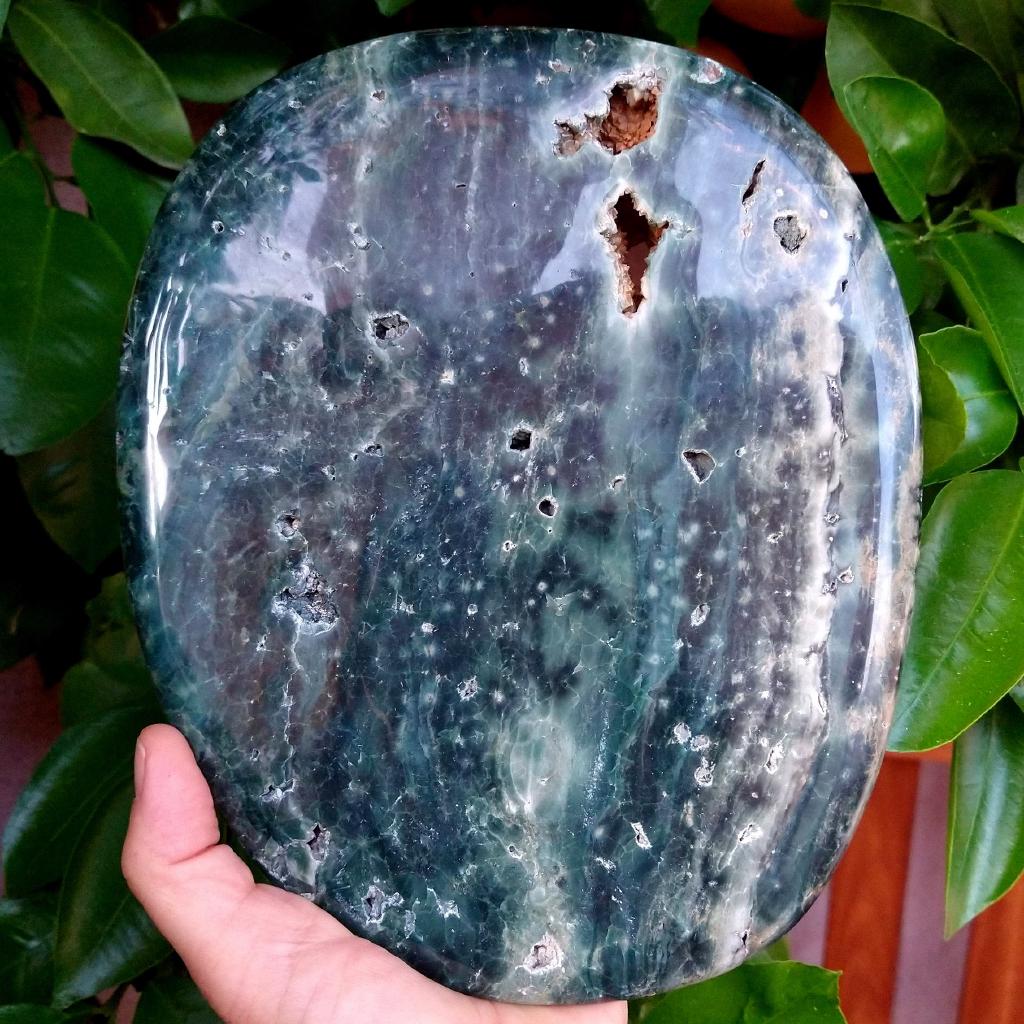 Green Ocean Jasper. 8.5 inches long, 0.7 inch thick, 3.10 pounds in weight. This is a one-of-a-kind item - you will receive the actual item in photo. Once sold, it is gone.
