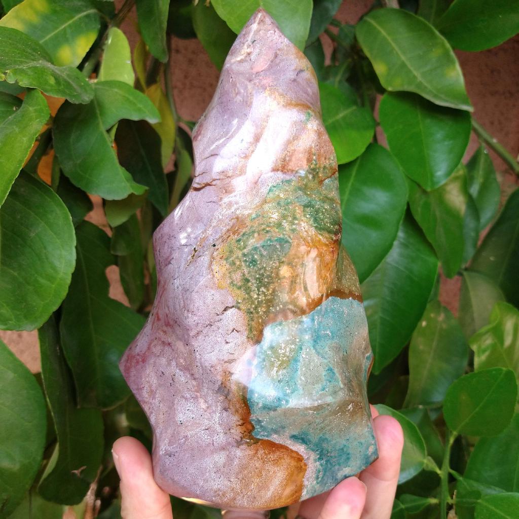 Ocean Jasper, cut & polished. 7 inches long, 3.21 pounds in weight. This is a one-of-a-kind item. You will receive the actual item in photo. Once sold, it is gone.