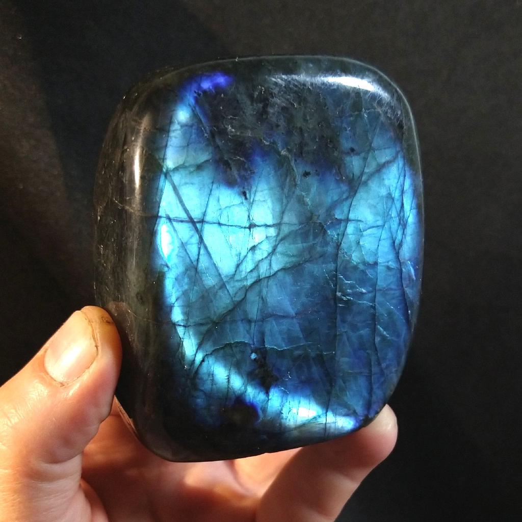 Polished Labradorite from Madagascar. 3 inches long, 0.77 pound in weight.This is a one-of-a-kind item. You will receive the actual item in photo. Once sold, it is gone.