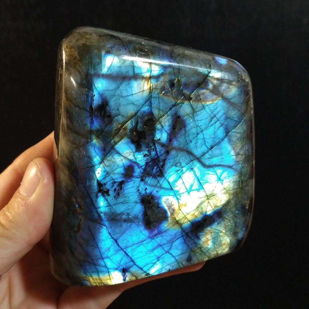 Labradorite from Madagascar. 3.5 inches tall, 1.26 pounds in weight.This is a one-of-a-kind item. You will receive the actual item in photo. Once sold, it is gone.